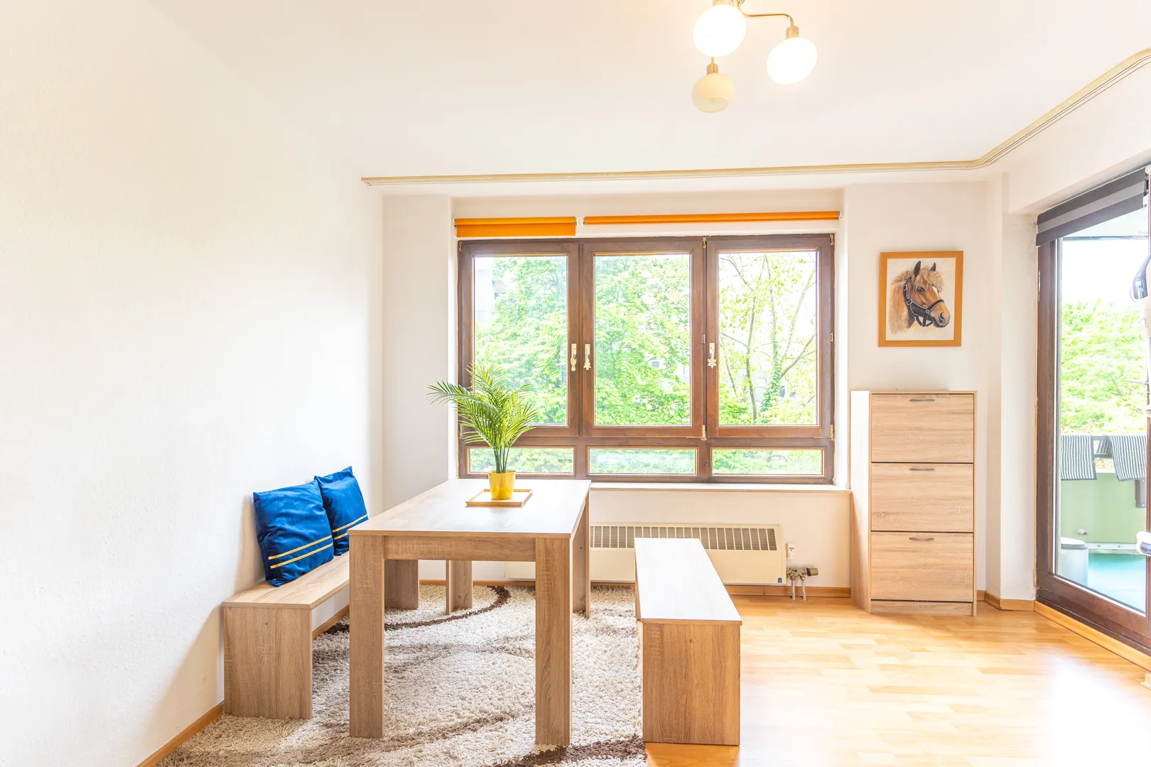 Gegenüber vom Eingangsbereich befindet sich der ca. 25,00 m2 große und geräumige Wohn/-Essbereich. Von hier aus haben Sie Zugang zum gemütlichen Süd Balkon, sowie zu der hellen Küche.