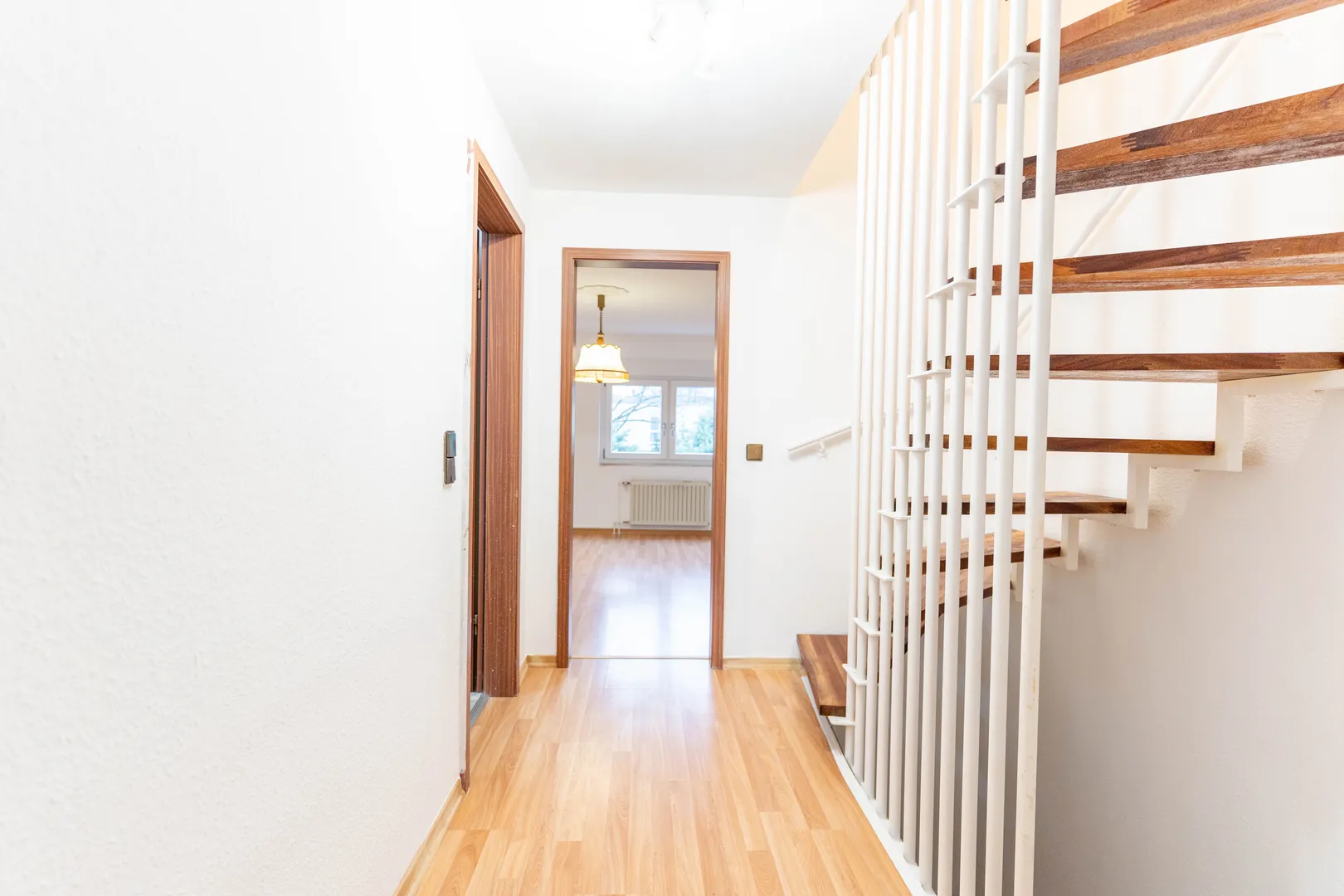 Das Haus ist vollständig mit hochwertigem Laminatboden ausgestattet, während die hell gestrichenen Wände für eine freundliche und großzügige Raumwirkung sorgen. Im großen Keller befinden sich ein Technikraum sowie ein Partykeller, der sich ideal für gesellige Abende oder als Hobbyraum nutzen lässt.