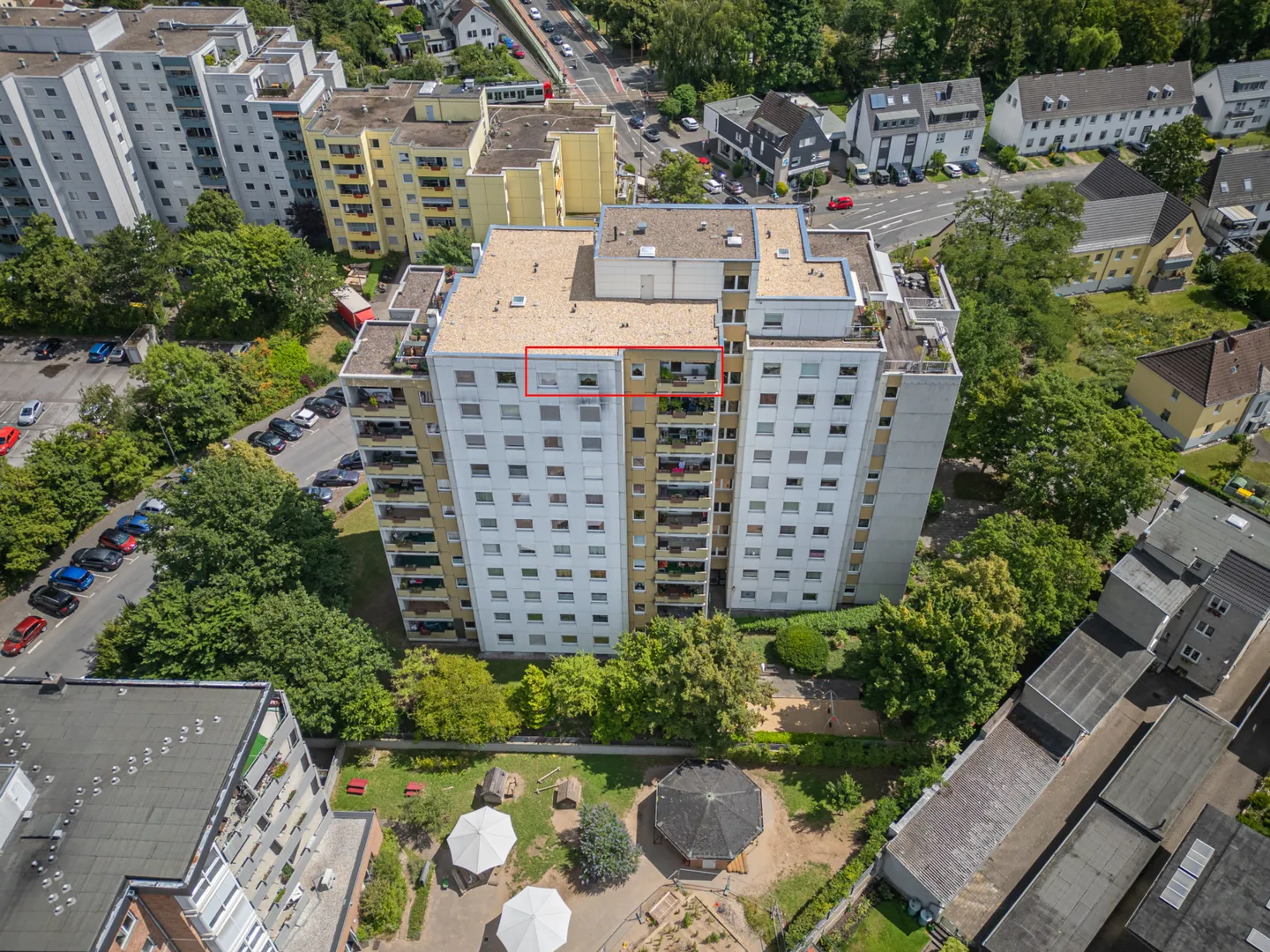 Das Gebäude ist mit zwei Aufzügen ausgestattet: Einer davon ist nur mit einem Schlüssel bis in den Keller befahrbar, der andere steht allen Bewohnerinnen und Bewohnern regulär zur Verfügung. Zudem wurde das Dach des Gebäudes kürzlich vollständig saniert – ein bedeutender Vorteil hinsichtlich Werterhalt und Energieeffizienz.