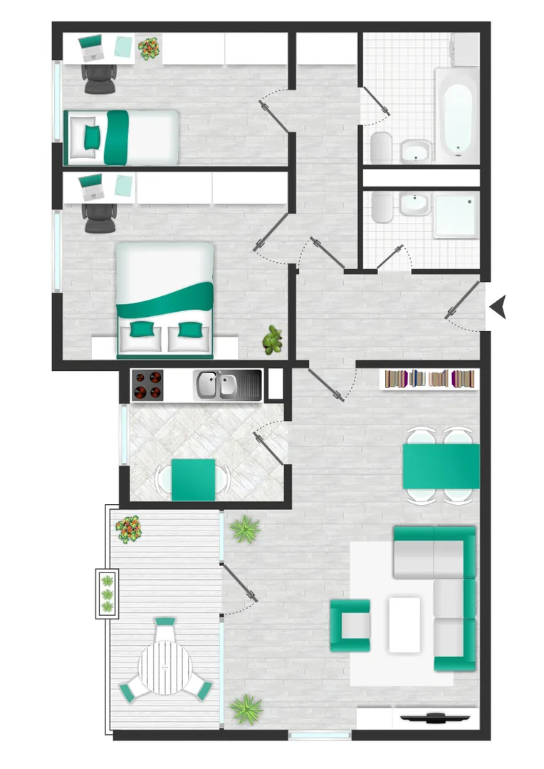 Neben dem Hauptschlafzimmer steht ein weiterer, flexibel nutzbarer Raum zur Verfügung – ideal als Kinderzimmer, Homeoffice oder Gästezimmer. Besonders komfortabel: Die Wohnung verfügt über zwei Badezimmer – eines mit Dusche, das andere mit Badewanne – was den Alltag sowohl für Eigennutzer als auch für Mieter angenehm gestaltet.