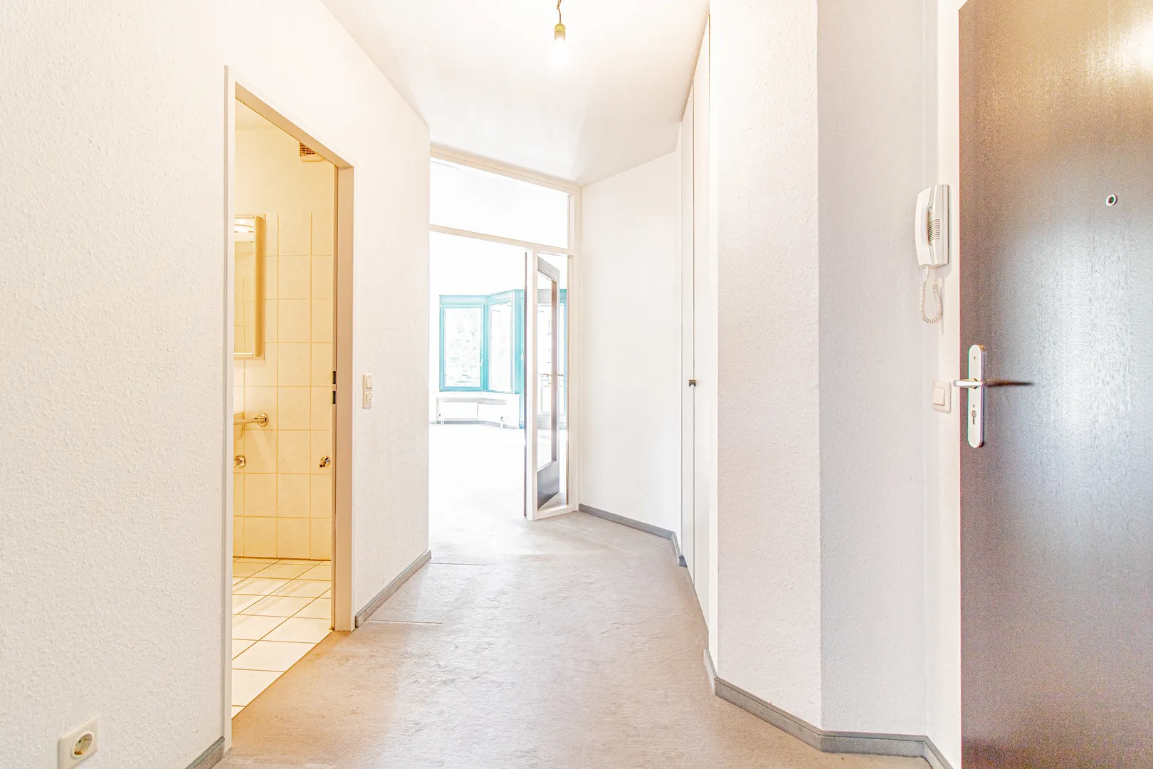 Die überaus gemütliche 2-Zimmer-Wohnung befindet sich im 1. Obergeschoss eines im Jahr 1994 erbauten Hauses und liegt in Wesseling-Keldenich.Die Immobilie wurde in massiver Bauweise errichtet und befindet sich in einem renovierungsbedürftigen Zustand. Die Wohnfläche der Wohnung beträgt 60,61 m2, verteilt auf zwei Zimmer, Küche, Flur und einem Badezimmer. Vom Eingangsbereich mit praktischem Einbauschrank finden Sie linksseitig die helle Küche. Die Küche inkl. Elektrogeräte ist im Kaufpreis enthalten und kann gerne übernommen werden.
