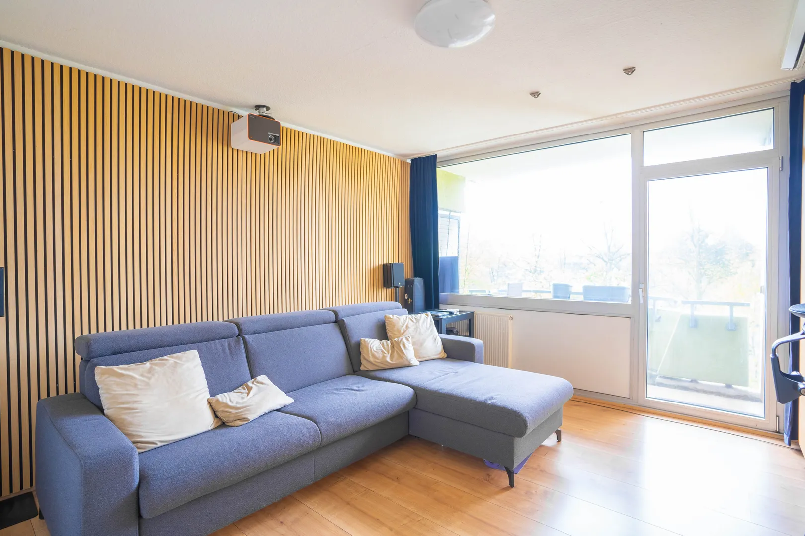 Der helle und großzügige Wohn-/Essbereich mit integrierter Bar-Küche erstreckt sich über etwa 20 m2. Von hier aus genießen Sie Zugang zu einem gemütlichen Ost-Balkon.