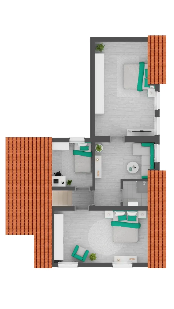 Das ausgebaute Dachgeschoss umfasst drei weitere Zimmer, ein Duschbad sowie einen kleinen Wirtschaftsflur – ideal für Rückzug, Homeoffice oder Gäste.