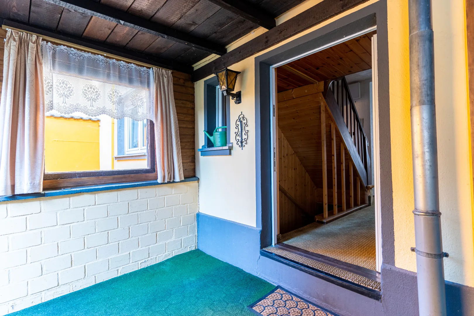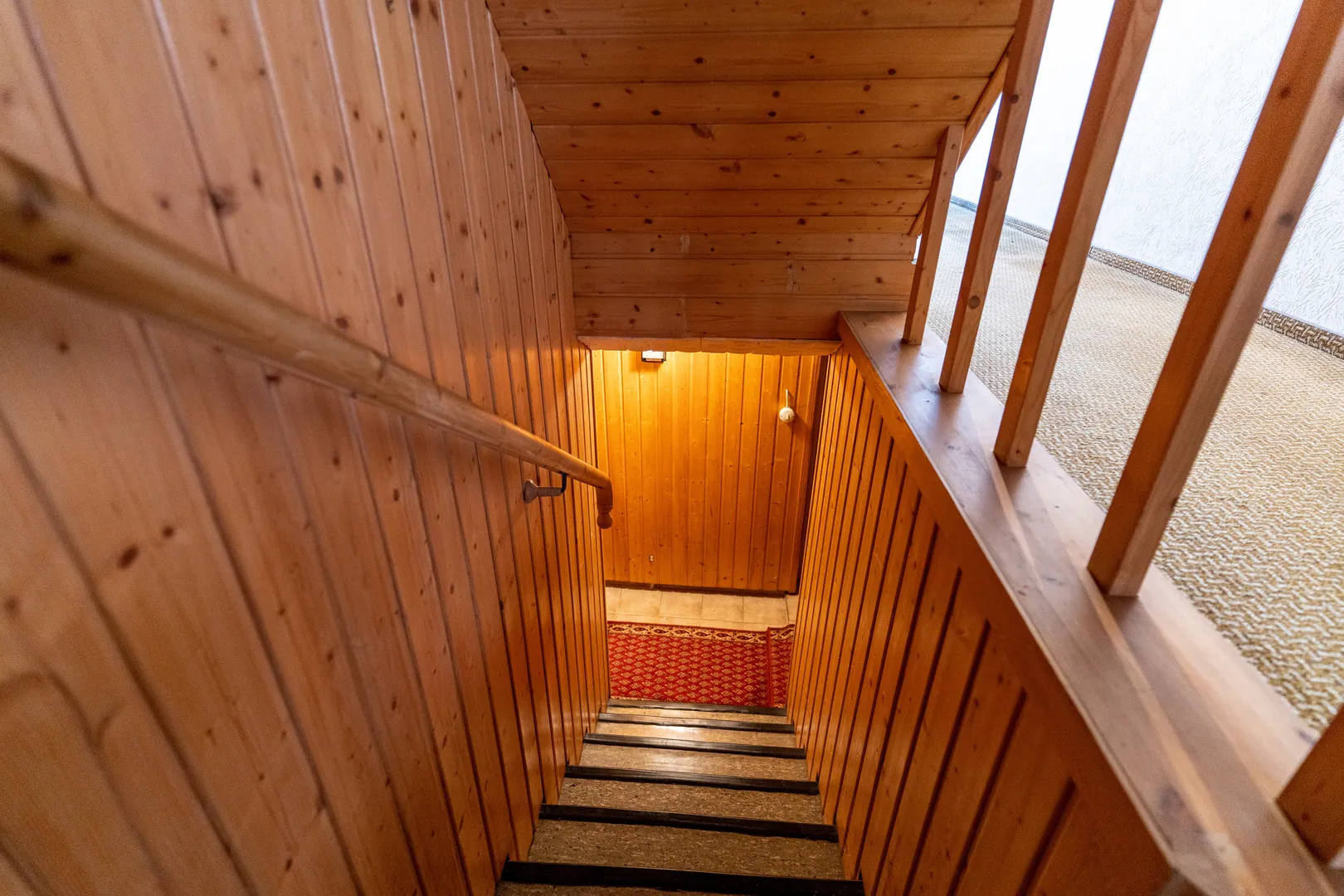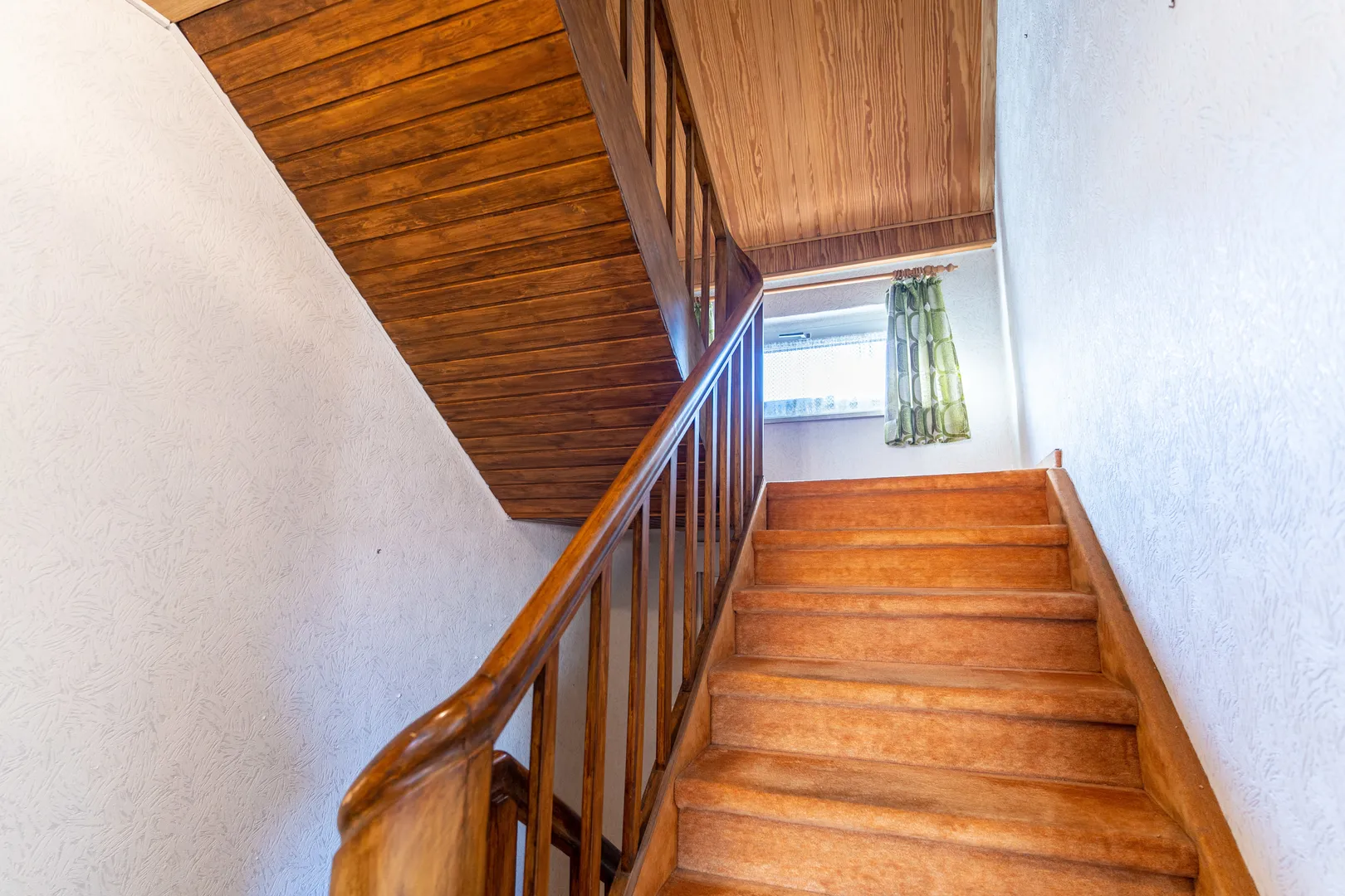 Über den Treppenaufgang, gelangen Sie zum Obergeschoss. Dort befinden sich drei Zimmer. Jedes Zimmer ist mit einem doppelverglasten Kunststofffenster ausgestattet.