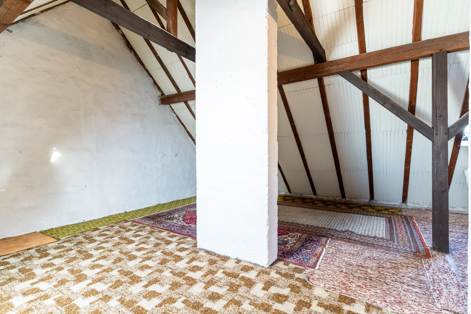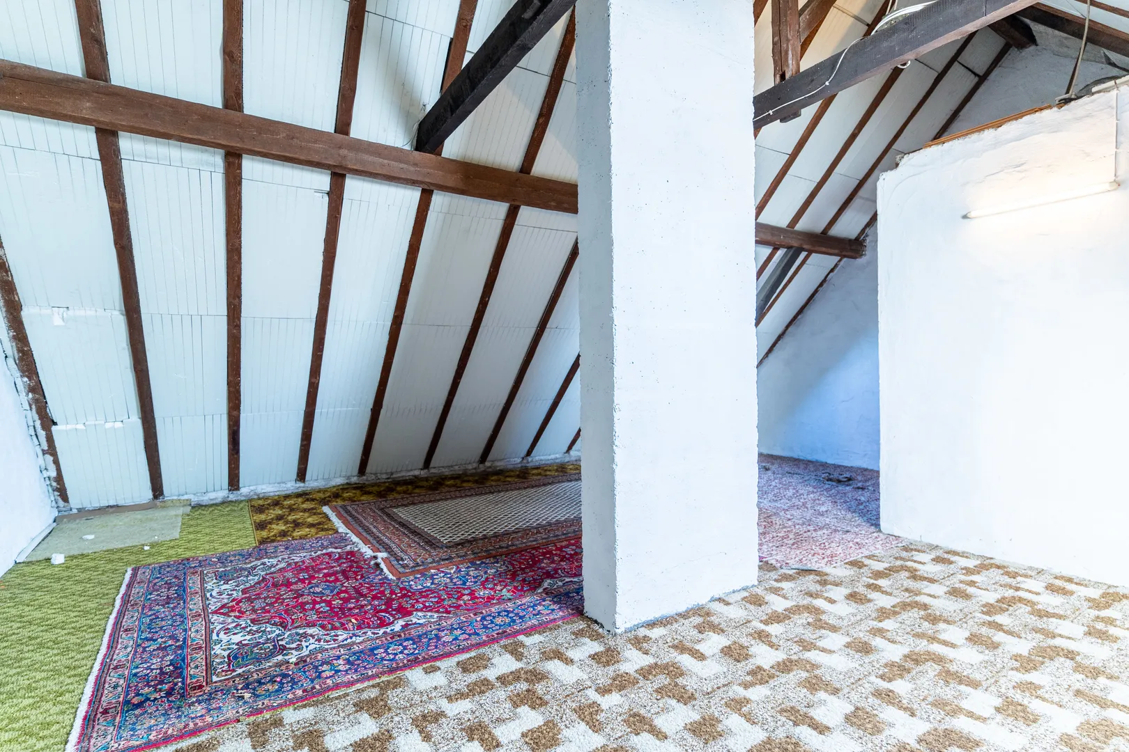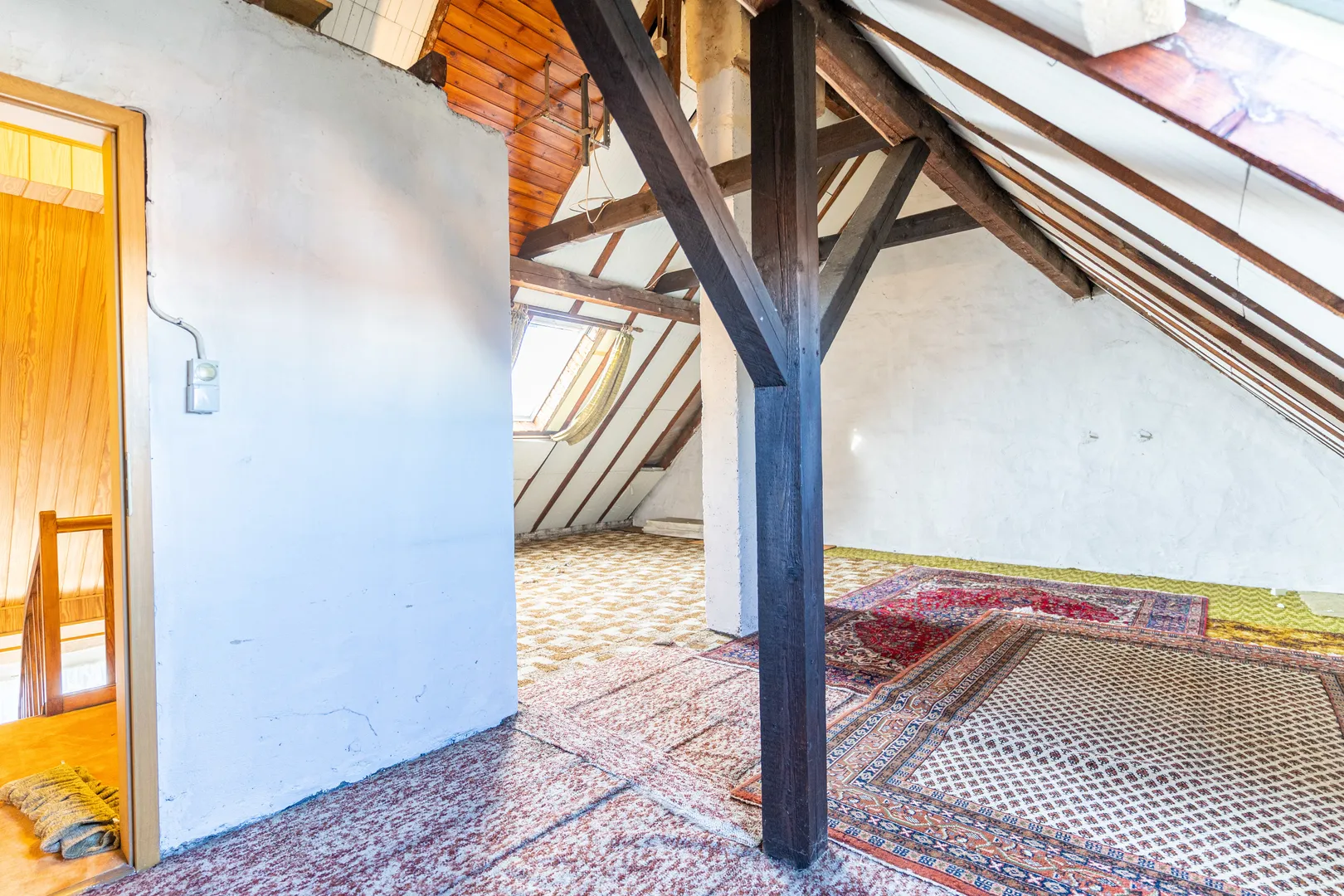 Der Dachboden ist aktuell offen gehalten und nicht ausgebaut. Die Dachschrägen sind mit Styropor gedämmt. Zudem existieren zwei kleine Dachfenster.