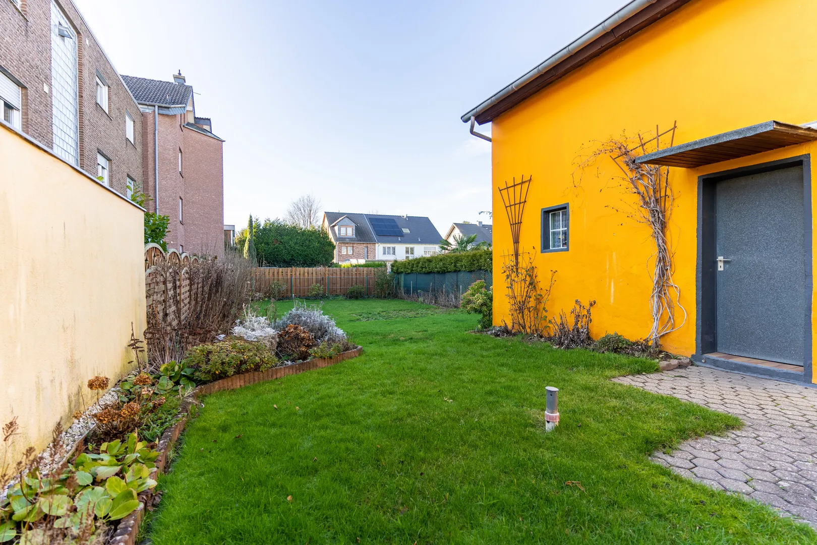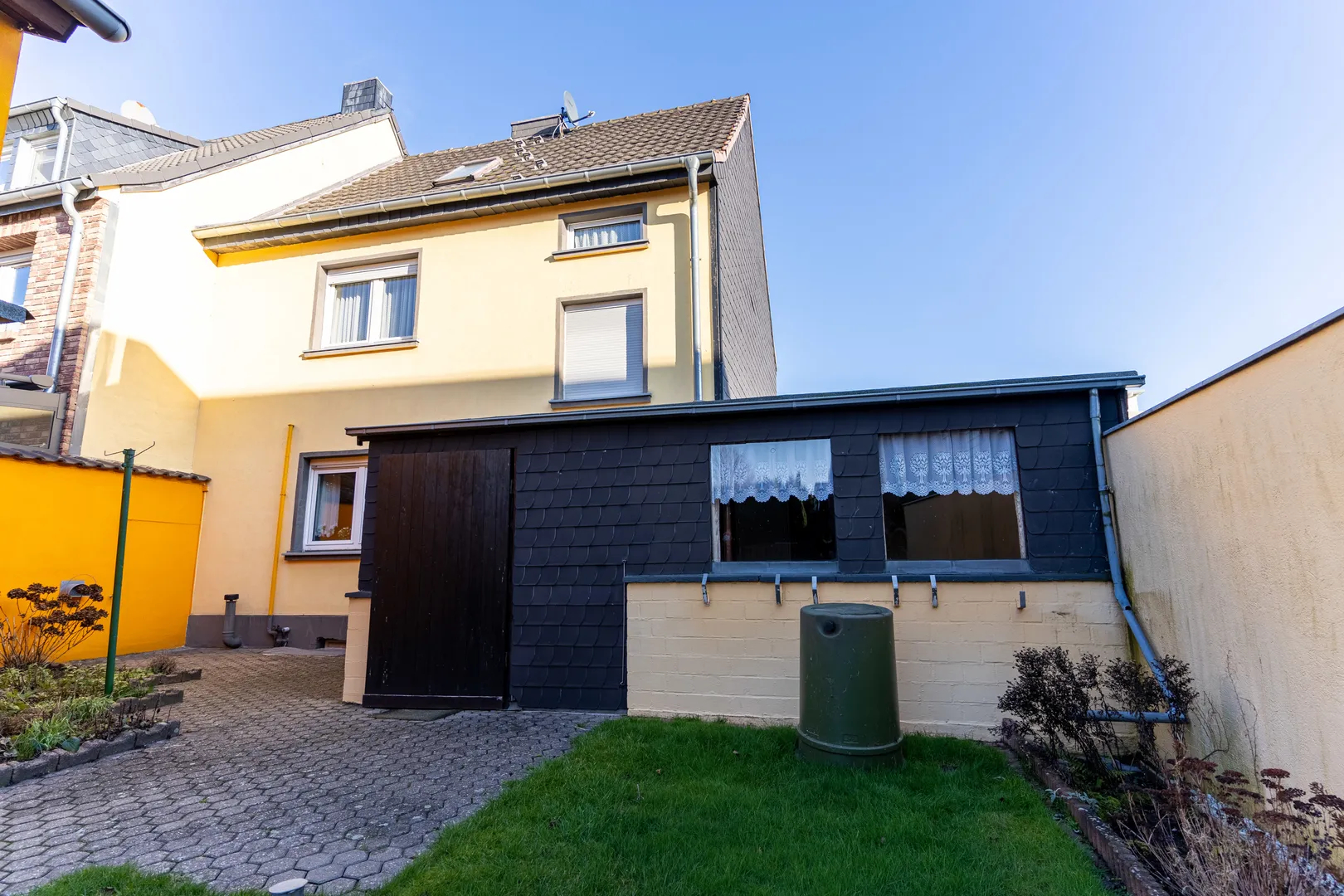Das Haus ist vollunterkellert und liegt insgesamt auf einem 392 m2 großen Grundstück. Zudem existiert neben dem Haus eine Garage mit elektrischem Rolltor und im hinteren Teil des Grundstücks ein Nebengebäude, mit einer Fläche von ca. 18 m2.