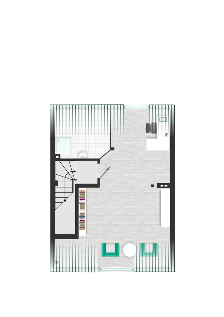 Im Dachgeschoss stehen ca. 31,26 m² zusätzliche Nutzfläche zur Verfügung – samt offener Dusche, Waschbecken und flexibel nutzbarem Raum für kreative Ideen. Ob Homeoffice, Gästezimmer oder Atelier: Die Möglichkeiten sind vielfältig.